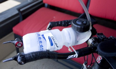 Most people subscribe to the theory where you keep sipping water the whole time you’re riding, staying topped off, while a few claim that only drinking a lot every 15 minutes or so allows the body to think it’s dehydrated which leads to better absorption in the stomach. I personally prefer the former versus the latter, but if that’s not working for you, try delaying when you drink and drink more to see if that works. I recommend people that do longer races have an aero drink system attached to the aerobars so that when you’re down in the aerobars fluid is readily available at all times, without having to reach down or back for a bottle, facilitating drinking more and without getting out of the aero position and creating more drag.